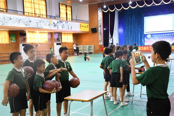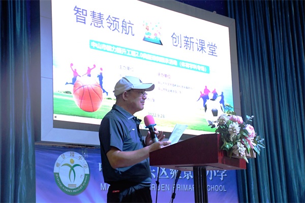 為發(fā)揮能力提升工程2.0試點(diǎn)區(qū)和試點(diǎn)校示范引領(lǐng)作用,探索智慧教育環(huán)境下體育學(xué)科的教學(xué)模式,促進(jìn)信息技術(shù)與教育教學(xué)融合創(chuàng)新發(fā)展,2022年9月28日上午,東區(qū)雍景園小學(xué)承辦了主題為“智慧領(lǐng)航·創(chuàng)新課堂”的中山市能力提升工程2.0體育學(xué)科典型課例的展示交流活動(dòng),并進(jìn)行了現(xiàn)場直播。廣東省教育研究院體育教研員肖建忠博士、中山市能力提升工程2.0辦公室吳寒冬主任、中山市教育教學(xué)研究室教研員陳明宏老師、中山市教育教學(xué)研究室兼職體育教研員李濤老師、中山市教育技術(shù)中心陳志豪老師、東區(qū)街道教育和體育事務(wù)中心體育教研員梁國來老師、東區(qū)雍景園小學(xué)歐淑霞校長、東區(qū)各學(xué)校體育老師以及線上的老師參加了本次活動(dòng)。