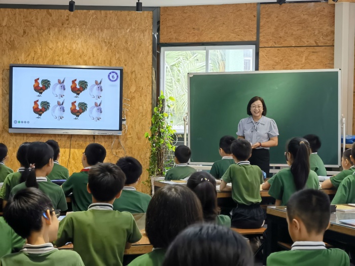 在成熟組比賽中,黎老師執(zhí)教的是四年級《雞兔同籠》,她從看圖搶答雞和兔總的腿數(shù)游戲引入,通過畫一畫、擺一擺、算一算等活動,深刻理解用假設(shè)法解決雞兔同籠問題的算理,以第二名的優(yōu)異成績榮獲區(qū)教師能力大賽(成熟組)一等獎。