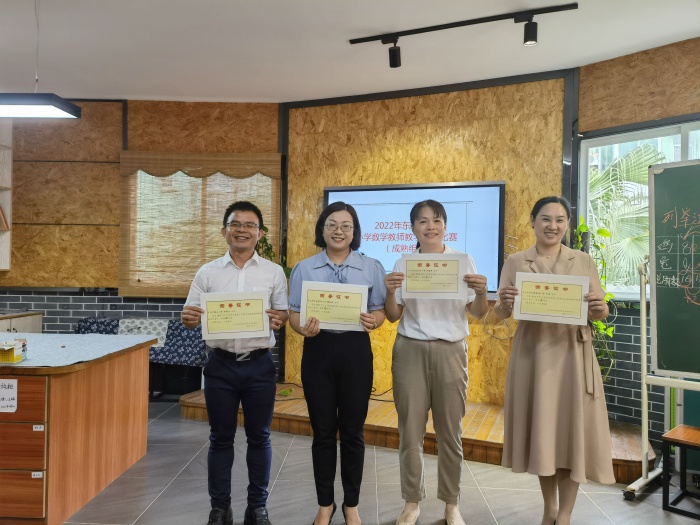 在第二階段說課和答辯比賽,溫老師對《平行四邊形的面積》一課進行說課,成功進入第三階段,也提前收獲區(qū)教師能力大賽(新秀組)一等獎。呂老師對《搭配(二)》進行精彩的說課,得到評委和觀摩教師的一致好評,榮獲區(qū)教師能力大賽(青年組)二等獎。
