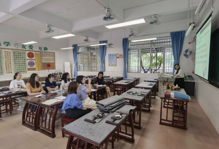 接著是由紫嶺小學的高景裕和張惠琳兩位老師進行課例展示。高老師執(zhí)教的數(shù)學課《圖形的運動(三)—旋轉》,高老師幽默風趣,在課堂上采用粵教翔云平臺和電子數(shù)字教材等多種信息技術手段,讓學生直觀感知,從而突破重難點。張老師執(zhí)教四年級語文下冊的《墨梅》,張老師循循善誘,用飽含詩意的語言,道出蘊藏在詩中的“家中梅、畫中梅、心中梅”三個層面,并通過微視頻等技術手段,幫助學生加深理解詩中的意境。