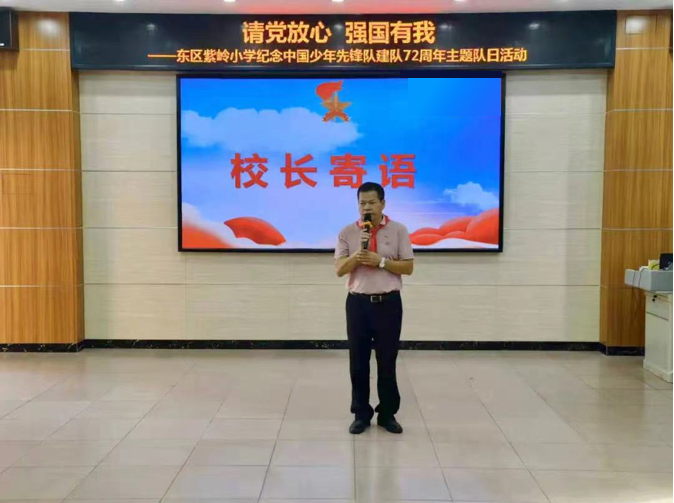 東區(qū)紫嶺小學(xué)黨支部書記、校長、少工委主任何建明結(jié)合習(xí)近平總書記“七一”重要講話精神,給予少先隊(duì)員殷殷叮囑和深切期望。