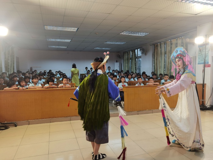 為加強(qiáng)學(xué)生的美育教育,提升學(xué)校美育教學(xué)水平,弘揚(yáng)中華優(yōu)秀傳統(tǒng)文化,推動(dòng)戲曲的傳承與發(fā)展,9月23日下午,牛角小學(xué)舉辦“粵劇進(jìn)校園”活動(dòng),廣東香山粵劇院的演員們來到牛角小學(xué)為孩子們帶來精彩絕倫的表演。