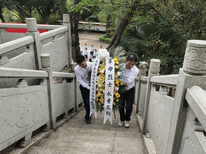 翠柏青松伴英烈,清明祭掃寄哀思。為了銘記歷史,緬懷革命先烈,進一步加強愛國主義、黨史國史教育,傳承紅色基因,爭做新時代好少年,4月12日下午,牛角小學組織黨員教師、學校行政以及少先隊員代表前往阜沙烈士陵園,參加“緬懷革命先烈 傳承紅色基因”清明祭英烈活動。