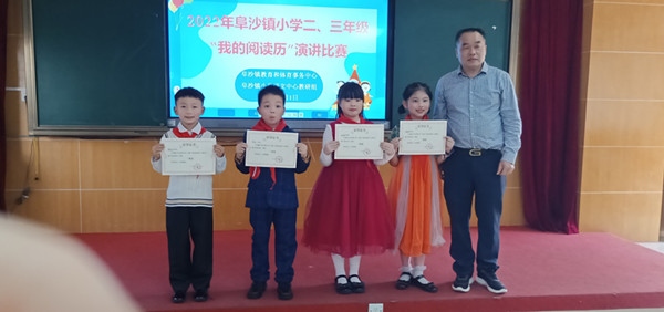 在這萬物復(fù)蘇,春意盎然的季節(jié),為了進(jìn)一步激發(fā)學(xué)生的課外閱讀興趣,加深學(xué)生對(duì)寒假推薦閱讀書目的理解,分享閱讀成果,挖掘潛能,提升學(xué)生的綜合素養(yǎng)。3月1日下午,阜沙鎮(zhèn)小學(xué)二、三年級(jí)"我的閱讀歷"演講比賽在中心小學(xué)如期舉行。本次 “我的閱讀歷”比賽得到了全鎮(zhèn)各個(gè)學(xué)校的積極響應(yīng)和熱烈支持,分別有來自5所小學(xué)的共42名同學(xué)參與到本次的比賽當(dāng)中。其中阜沙中心小學(xué)有13名學(xué)生參加了比賽。鎮(zhèn)教體中心徐瑞欽副主任親臨現(xiàn)場進(jìn)行了觀摩指導(dǎo)。