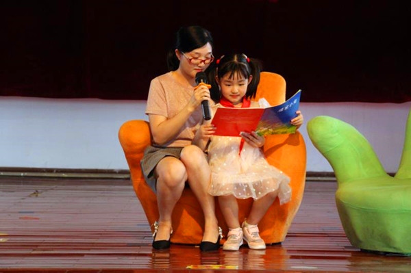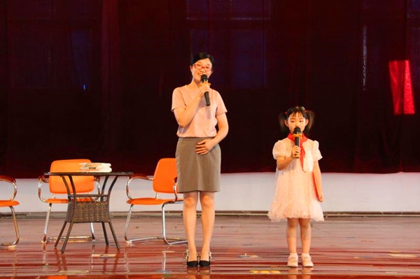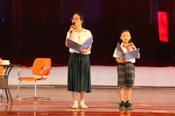 第一環(huán)節(jié)是教師“領(lǐng)讀者”代表和兩個親子家庭朗讀展示。首先由李偉霞老師、王鳳群老師、張玉云老師給大家?guī)淼摹邦I(lǐng)讀者”分享拉開序幕,她們身著盛裝、手持書卷,帶著對經(jīng)典的敬畏,或時而激昂澎湃、時而婉轉(zhuǎn)低回,帶著對朗讀的熱愛一一登上舞臺……自從學(xué)校開展讀書活動以來,很多家庭也投入到了讀書活動中。接著由何堅輝親子和潘麗韞親子為我們進(jìn)行分享,不僅要讓書香溢滿校園,更要讓書香走進(jìn)每一個家庭。那一刻,整個氛圍因經(jīng)典而美麗,因朗讀而沸騰!