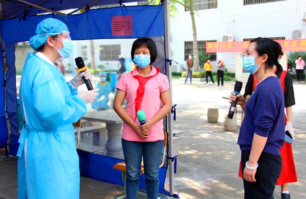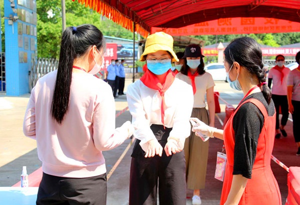 根據(jù)廣東省教育廳《關(guān)于全力防控疫情確保開學(xué)安全的通知》、《關(guān)于全員全過程全方位周密防控確保開學(xué)安全的通知》和《中山市中小學(xué)(幼兒園)開學(xué)準備工作導(dǎo)則》的通知等有關(guān)新冠肺炎疫情防控和開學(xué)準備工作的文件精神,阜沙中心小學(xué)安排進行新冠肺炎疫情應(yīng)急處置演練,由馬成海副校長主持,主要情景有:模擬老師駕車上班,值班保安給老師測量體溫現(xiàn)場;模擬上學(xué),值日老師給學(xué)生測量體溫現(xiàn)場;模擬值日老師發(fā)現(xiàn)有學(xué)生體溫高于37.3℃時處理現(xiàn)場;模擬上課某班學(xué)生出現(xiàn)發(fā)熱、嘔吐癥狀時處理現(xiàn)場;模擬學(xué)生午餐現(xiàn)場;模擬學(xué)生放學(xué)離?,F(xiàn)場。為了演練更加逼真,學(xué)校成立導(dǎo)演組,根據(jù)學(xué)校一日的教學(xué)活動過程,從上學(xué)、上課、午餐、放學(xué)等環(huán)節(jié)可能出現(xiàn)的情況,編寫劇本,每個情景安排一位行政負責排練,經(jīng)過兩次的彩排,今天的演練非常成功,老師們熟練操作,過程流暢。