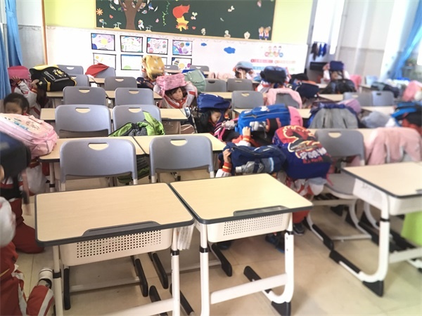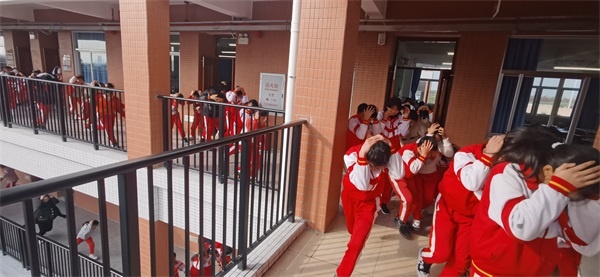 演練開始了,一聽到警鈴響起,各班教師立刻停止一切教學活動,并指揮學生就近蹲在桌子旁邊、承重墻的墻根或墻角進行躲避,學生護住頭部并降低身體重心,做好自我保護。30秒后,警鈴再次響起,聽到疏散信號后,教師們迅速組織學生疏散,所有學生迅速起立,按照疏散路線井然有序到達集結地點。各班教師迅速就位,維持好班級紀律,清點人數(shù),層層上報。集結完畢后,梁耀昌主任對此次疏散進行了總結,他不僅肯定了各班級均能按照事先預定疏散路線,迅速、有序到達指定地點集合,同時還強調這次演練的意義是進一步增強師生的防震減災意識。