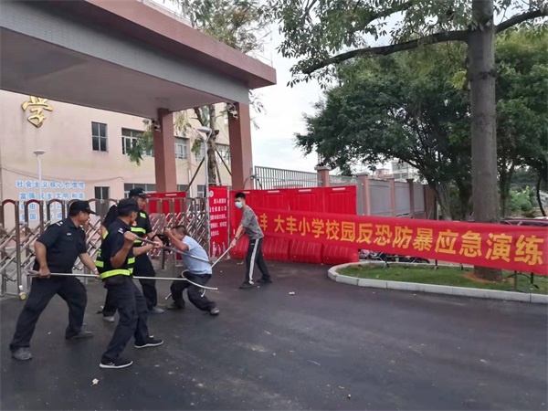 為進一步加強學校安全保衛(wèi)工作,檢驗處置突發(fā)事件指揮應(yīng)變能力和各部門協(xié)調(diào)配合的能力,提高全校師生緊急避險的能力,9月17日下午,大豐小學開展了本學期第一次校園防暴反恐培訓及應(yīng)急模擬演練。