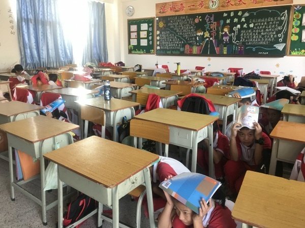 伴隨著第一次警報(bào)聲的響起,各班主任組織學(xué)生進(jìn)行避險(xiǎn),用書包或厚書保護(hù)頭部蹲于課桌下,在原地避險(xiǎn)持續(xù)約30秒。第二次警報(bào)聲響起后,學(xué)生開始逃生,迅速有序地從教室前、后門緊急撤離。待學(xué)生撤離到學(xué)校操球場(chǎng)后,各班班干整理隊(duì)伍、清點(diǎn)人數(shù)、班主任匯報(bào)人數(shù)。整個(gè)演練過(guò)程,全體師生動(dòng)作敏捷,協(xié)調(diào)配合,全程無(wú)一人掉隊(duì),無(wú)一人摔跤,逃生過(guò)程用時(shí)1分20秒。演練結(jié)束后,學(xué)校安全組副組長(zhǎng)葉露老師對(duì)此次活動(dòng)做總結(jié),他要求全體師生要防患于未然,切實(shí)做好防范措施,增強(qiáng)安全意識(shí),增強(qiáng)避險(xiǎn)的能力。