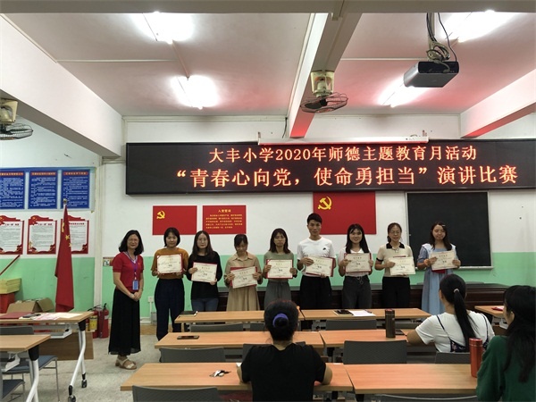 為了進(jìn)一步加強(qiáng)師德師風(fēng)建設(shè),全面提升教師思想政治素質(zhì)和職業(yè)道德水平,努力造就一支師德高尚、業(yè)務(wù)精湛、充滿活力的高素質(zhì)教師隊(duì)伍,10月12日下午,大豐小學(xué)結(jié)合“不忘初心、牢記使命”師德建設(shè)主題教育月活動(dòng)舉行了一次“青春心向黨,使命勇?lián)?dāng)”的演講比賽。