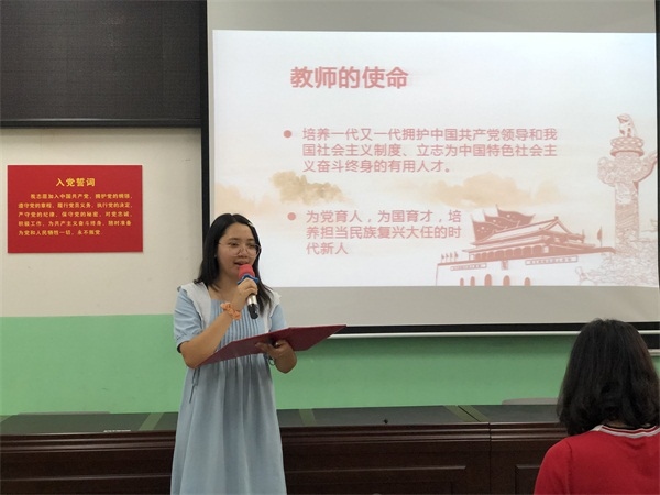 謝家潮老師的《以體育人》,講述了體育的重要性以及自身在課堂的主陣地中如何更好地育人,頻頻收獲老師們的掌聲;劉凱銀老師在演講的《牢記使命,讓青春發(fā)光》中談到,當(dāng)教師的初心是“堅(jiān)守”、“進(jìn)步”和“純粹”,她希望自己永懷初心,讓青春在奮斗中熠熠生輝;而吳雁琪老師演講《不忘初心勇?lián)?dāng),青年奮進(jìn)新時(shí)代》時(shí),語調(diào)慷慨激昂,讓在場的老師為之動(dòng)容,熱血澎湃。每位參賽選手們都圍繞對(duì)學(xué)生的“愛”展開?!皭邸痹从诟呱械膸煹?,“愛”意味著無私的奉獻(xiàn),教師對(duì)學(xué)生的愛,是穩(wěn)固的、深厚的,是與教師所肩負(fù)的社會(huì)責(zé)任緊密相連的,這種責(zé)任和愛能超越一切,匯聚成一股無可阻擋的力量,幫助孩子們推開世界的門。