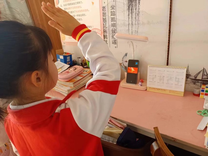 在主持人張婉老師的宣布下,本次會(huì)議在莊嚴(yán)的國歌聲中拉開了序幕。少先隊(duì)員在各自家中,挺胸肅立,齊唱國歌和隊(duì)歌。隊(duì)旗飄揚(yáng),歌聲嘹亮,表達(dá)著少先隊(duì)員們崇高的理想和堅(jiān)定的信念。