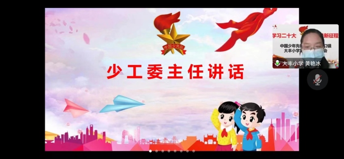 受疫情影響,這次少代會(huì)以線上與線下相結(jié)合的方式進(jìn)行。港口鎮(zhèn)團(tuán)委書記李冠良、大豐小學(xué)黨委書記黃艷冰、少工委副主任梁耀昌、德育處主任余麗苑、大隊(duì)輔導(dǎo)員張婉、家委代表洪葉、教師代表及少先隊(duì)隊(duì)員代表參加了本次會(huì)議。