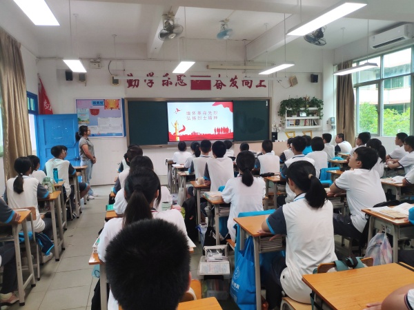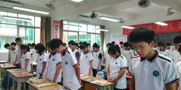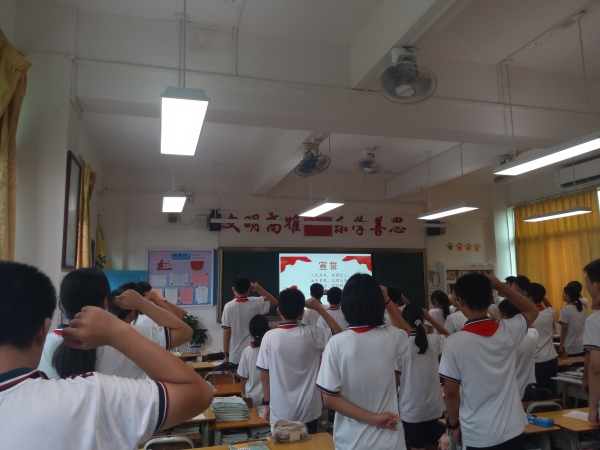 活動首先舉行升旗儀式。伴隨著中華人民共和國國歌激昂旋律,國旗緩緩升起,全體師生高唱國歌。升旗儀式完畢后,全體師生在教室里觀看紀念革命先烈視頻《祭英烈》,先烈的英勇事跡深深感動了學(xué)生。然后,全體向革命烈士默哀一分鐘,表達師生對烈士的緬懷與崇敬之情。緊接著,全體學(xué)生莊嚴宣誓:奮發(fā)有為,誓做棟梁。振興中華,再造輝煌?;顒幼詈笥傻掠幹魅卧S春娜總結(jié)發(fā)言,許主任向同學(xué)們表達,祖國的和平與富饒,民族的獨立與復(fù)興,離不開英雄的奮斗與奉獻。我們榮幸生活在沒有硝煙的天空下,要珍惜來之不易的幸福生活,奮發(fā)圖強,為中華之崛起而讀書。