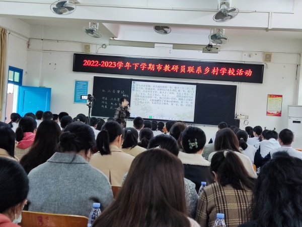 最后,市教研員郭躍輝老師進行總結(jié)發(fā)言。在對兩位老師的授課表示贊許之后,郭老師感慨于新老師鄭思怡一年來的成長與進步,鼓勵大南中學語文老師們在“教學評一致性”這一理念的指導(dǎo)下不斷提升課堂教學效率;并表示以后還將積極聯(lián)系大南中學,助力鄉(xiāng)村教師的專業(yè)化成長。此外,郭老師還帶領(lǐng)參會老師認真思考語文教育教學方面的兩個問題:一是如何深入解讀課文,二是文言文閱讀教學如何有效開展,引導(dǎo)老師們思考如何立足于培養(yǎng)獨立的閱讀者,讓學生學會閱讀同類的文章,從而促進文言文閱讀教學的有效性。