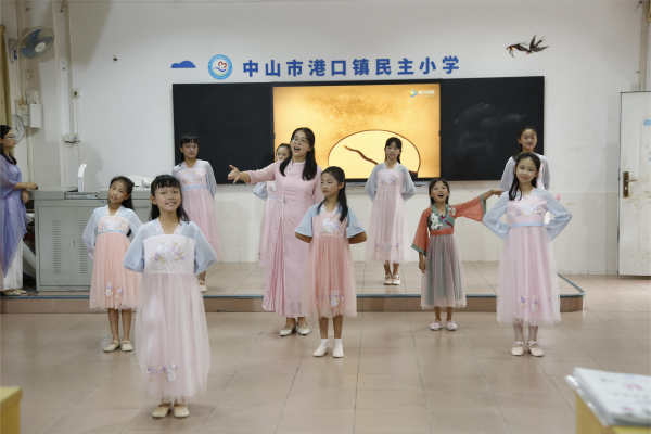 “接天連葉無(wú)窮碧,映日荷花別樣紅。”6月14日下午,中山市港口鎮(zhèn)民主小學(xué)召開市級(jí)立項(xiàng)課題“智慧教育背景下中華經(jīng)典古詩(shī)文與小學(xué)學(xué)科教學(xué)有效融合的實(shí)踐研究”中期報(bào)告會(huì)。中山市教育學(xué)會(huì)會(huì)長(zhǎng)陳春艷主任、中山市教研室教研員林曉潔老師、港口鎮(zhèn)教育和體育事務(wù)中心教研專干(課題管理人)蘇彩南老師、港口鎮(zhèn)兄弟學(xué)校教師代表以及本校領(lǐng)導(dǎo)、語(yǔ)文科組教師、課題組全體成員參加了本次會(huì)議。會(huì)議由周天樂(lè)老師主持。本次中期報(bào)告會(huì)議由課例展示、師生展演、中期匯報(bào)、專家點(diǎn)評(píng)四部分組成。