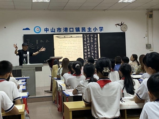 在偉大的祖國(guó)73華誕來(lái)臨之際,為進(jìn)一步讓同學(xué)們?cè)跁?shū)法課堂中感受中華燦爛的優(yōu)秀傳統(tǒng)文化,建立文化自信,培養(yǎng)健康的審美情趣和愛(ài)國(guó)情懷,使學(xué)生能在積極向上的校園文化環(huán)境中成長(zhǎng),2022年9月29日下午,民主小學(xué)在多媒體教室開(kāi)展了慶國(guó)慶暨中華優(yōu)秀傳統(tǒng)文化教育研討活動(dòng),全校書(shū)法任課教師、市級(jí)課題“智慧教育背景下經(jīng)典古詩(shī)文與小學(xué)學(xué)科教學(xué)有效融合的實(shí)踐研究”課題組成員、鎮(zhèn)級(jí)課題“中山鄉(xiāng)土文化元素融合學(xué)校美育活動(dòng)的實(shí)踐研究”課題組成員,以及學(xué)生代表共60人參加活動(dòng)?;顒?dòng)由盧玉湘老師主持。