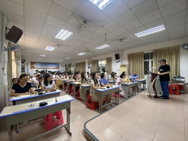 本次活動(dòng)特邀中山市書(shū)法家協(xié)會(huì)副主席、中山市教師書(shū)法協(xié)會(huì)副主席單永輝老師主講。單老師以《中國(guó)歷史上的20位書(shū)法宗師和中山當(dāng)代本土?xí)覉D說(shuō)》為主題,同參會(huì)師生進(jìn)行了專(zhuān)題培訓(xùn)。在活動(dòng)現(xiàn)場(chǎng),單老師從秦李斯主持統(tǒng)一六國(guó)文字開(kāi)始談起,為大家講述了張芝、王羲之、孫過(guò)庭等書(shū)法宗師與書(shū)法藝術(shù)的歷史故事,并用圖文結(jié)合的方式聲情并茂地為大家講解了中山當(dāng)代本土?xí)业墓适隆?/p>