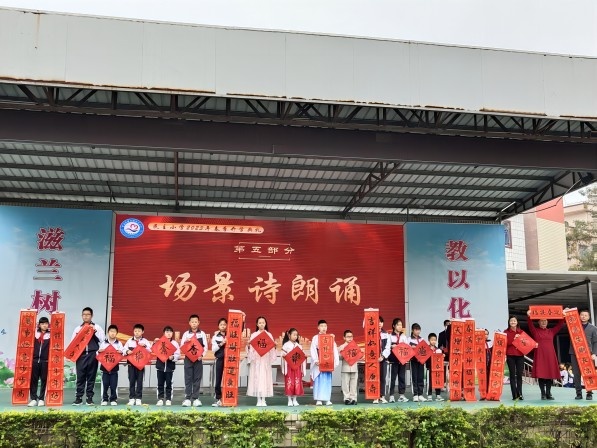 在寒假學(xué)習(xí)才藝展示中,學(xué)生的情景詩歌朗誦《滿江紅》,鏗鏘有力的聲音,展現(xiàn)了民主學(xué)子昂揚(yáng)向上的精神面貌,激勵(lì)每一個(gè)學(xué)生努力譜寫自己的《滿江紅》。筆墨中國風(fēng),開卷紙硯香?,F(xiàn)場同學(xué)們還揮毫潑墨積極展示書法成果,以滿懷信心和祝福開啟新的學(xué)期。