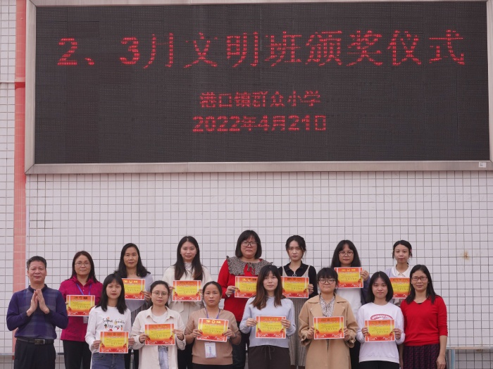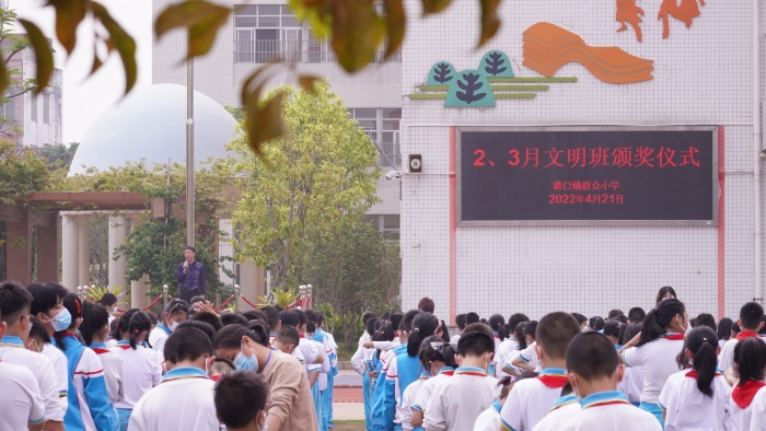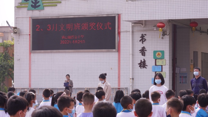 2022月4月21日上午大課間,群眾小學(xué)少先隊(duì)少工委舉行二、三月份“爭(zhēng)創(chuàng)文明班”小結(jié)頒獎(jiǎng)活動(dòng)。
