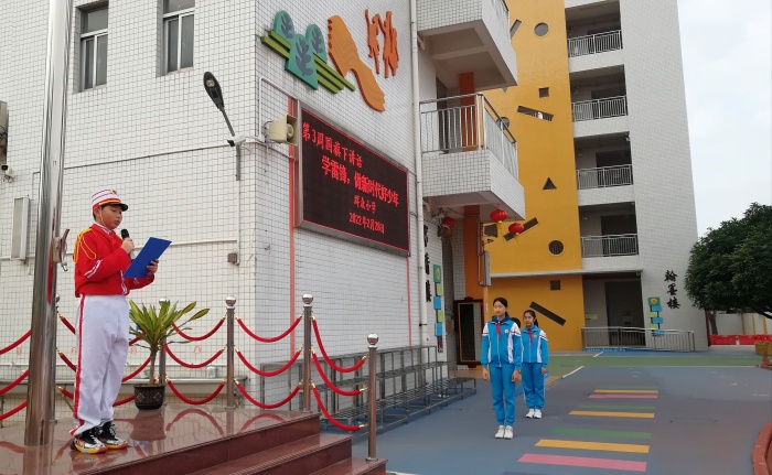 2月28日升旗禮上,群眾小學(xué)少工委組織開展以“學(xué)雷鋒,做新時代好少年”為主題的雷鋒月系列活動啟動儀式。在國旗下,六(2)班少先隊員代表劉鵬同學(xué)講話。他希望少先隊員們把雷鋒精神落到實處,并提出建議:學(xué)習(xí)雷鋒助人為樂,讓雷鋒精神在校園閃光;學(xué)習(xí)雷鋒艱苦樸素、勤儉節(jié)約的作風(fēng);弘揚熱愛集體的精神,共創(chuàng)美麗校園;發(fā)揚“釘子”精神,努力學(xué)習(xí)。接著,少先隊大隊輔導(dǎo)員胡嬋媛老師呼吁全體少先隊員要像雷鋒叔叔那樣做好每一件小事,做新時代好少年。