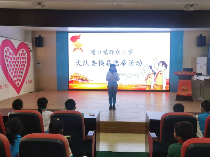 競選當天,選手們依序進行時間為1分鐘演講。隊員們自信大方、談吐非凡,介紹了本人的先進事跡、競選崗位優(yōu)勢,也闡述了對大隊委職責(zé)的見解和做好工作的堅定決心。選手們積極向上的精神面貌,贏得了隊員們的陣陣掌聲。隨后,少先隊員代表為心目中的選手投票,少工委成員根據(jù)計票結(jié)果商議最終大隊委名單。最后,群眾小學(xué)少工委主任梁銓華致辭。他希望各位少先隊員認真學(xué)黨史,紅領(lǐng)巾心向黨,努力學(xué)習(xí),好好工作,愛祖國,愛學(xué)校,爭做社會主義建設(shè)者和接班人。