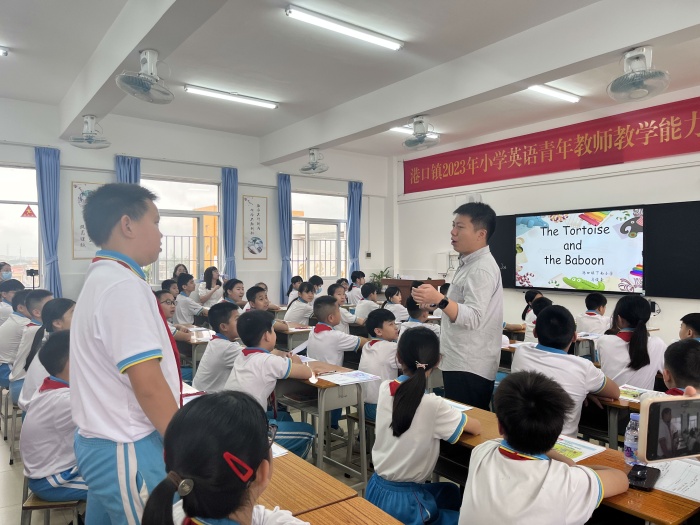 為進(jìn)一步提升小學(xué)英語(yǔ)青年教師的專業(yè)水平,夯實(shí)青年教師的教學(xué)技能,促進(jìn)青年教師綜合素養(yǎng)的提升,港口鎮(zhèn)教育和體育事務(wù)中心舉行了2023年港口鎮(zhèn)小學(xué)英語(yǔ)青年教師教學(xué)能力大賽。4月21日上午,港口鎮(zhèn)群眾小學(xué)承辦了本次比賽決賽階段“課堂教學(xué)比賽”活動(dòng)。港口鎮(zhèn)教育和體育事務(wù)中心吳濤濤老師及港口鎮(zhèn)英語(yǔ)骨干教師擔(dān)任本次比賽的評(píng)委。