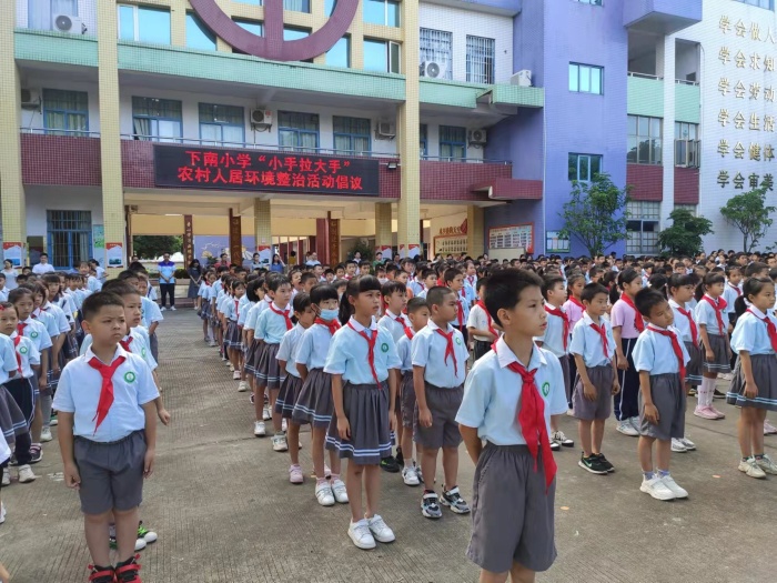 2022年5月30日,下南小學(xué)陳嫻玉老師利用在國(guó)旗下講話(huà)的時(shí)間向?qū)W生發(fā)出“小手拉大手”農(nóng)村人居環(huán)境整治活動(dòng)的倡議。在宣讀倡議書(shū)后,陳老師還指導(dǎo)學(xué)生學(xué)習(xí)了一首關(guān)于人居環(huán)境衛(wèi)生整治的順口溜。