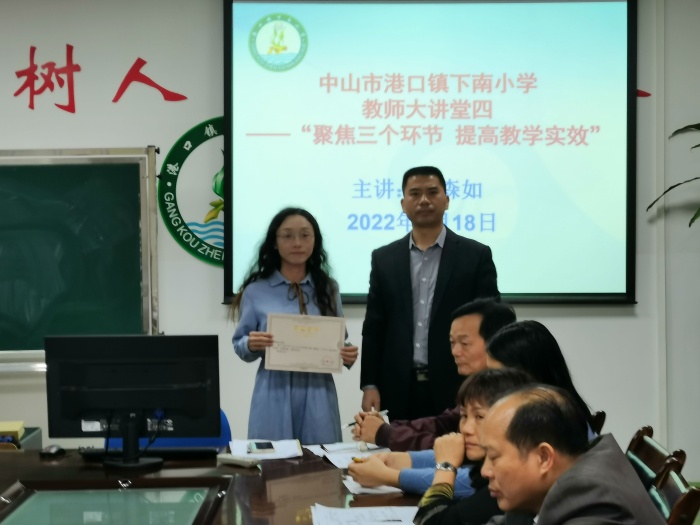 2022年4月18日下午,在港口鎮(zhèn)下南小學(xué)每周教師例會中,進行了以“聚焦三個環(huán)節(jié),提高教學(xué)實效”為主題的講座。學(xué)校管德豐校長、陳宇環(huán)副校長、教務(wù)處高主任、德育處梁主任和辦公室何主任出席了本次講座,學(xué)校部分教師也參與其中。