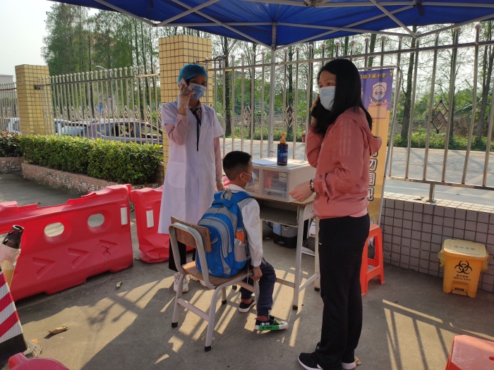 學(xué)校德育處梁廣平主任提前將演練方案發(fā)給老師們研讀,并對(duì)方案進(jìn)行了詳細(xì)的解讀,讓老師們對(duì)演練過程及細(xì)節(jié)有了全面的了解。活動(dòng)主要由“學(xué)生返校入門測(cè)溫”“上課發(fā)現(xiàn)異常學(xué)生應(yīng)急處置”和“發(fā)現(xiàn)學(xué)生為新冠肺炎病例”三部分的場(chǎng)景模擬組成。實(shí)戰(zhàn)演練從學(xué)生入校門接受晨檢開始,對(duì)晨檢落實(shí)、發(fā)現(xiàn)病例、詢問病情、病例隔離、啟動(dòng)應(yīng)急預(yù)案、登記報(bào)告、聯(lián)防聯(lián)控、消毒通風(fēng)等重點(diǎn)環(huán)節(jié)進(jìn)行了模擬。整個(gè)演練過程緊張有序,有條不紊,情境逼真,預(yù)設(shè)合理。最后,德育處梁廣平主任對(duì)學(xué)校的疫情防控工作進(jìn)行了部署,他提出:對(duì)新冠肺炎疫情的防控不能有絲毫的麻痹大意,全校老師要進(jìn)一步細(xì)化落實(shí)各項(xiàng)防控工作,做好校園的常態(tài)化疫情防控工作。