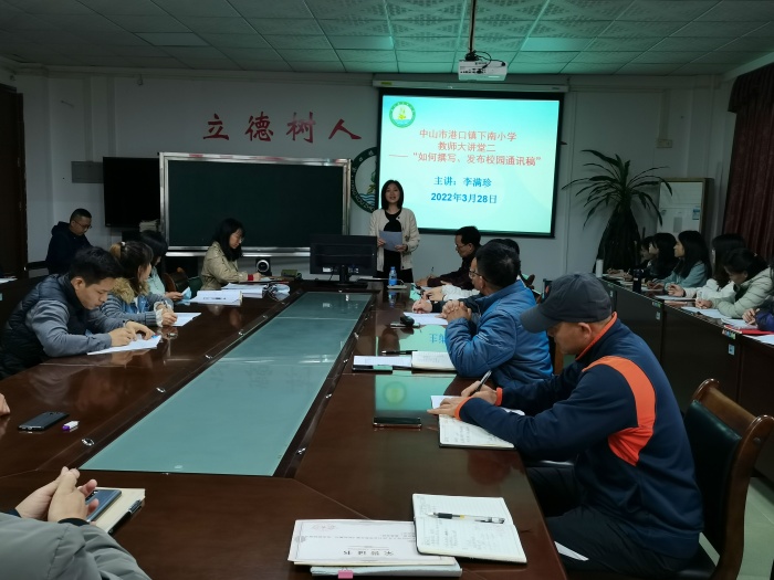 為了提升學(xué)校老師撰寫校園通訊稿的質(zhì)量,提高學(xué)校通訊稿的發(fā)布率,2022年3月28日下午,在港口鎮(zhèn)下南小學(xué)三樓會(huì)議室舉行了以“如何撰寫、發(fā)布校園通訊稿”為主題的講座。全體教師均參加了本次講座。
