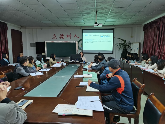 本次講座由學(xué)校語文科組長(zhǎng)李滿珍老師主持,李老師先簡(jiǎn)單地給老師們介紹了講座流程以及主要內(nèi)容,其中包括校園新聞的簡(jiǎn)介、寫作的技巧與方法、照片的拍攝及選擇以及發(fā)布通訊稿的方法。講座的內(nèi)容十分豐富,在場(chǎng)的老師們都目不轉(zhuǎn)睛,紛紛拿起筆做筆記。李老師用通俗易懂的語言為老師們講解了許多撰寫通訊稿時(shí)能用到的寫作技巧,她為大家分享了如何使用更簡(jiǎn)潔明了的語言去記錄校園生活。她的講解為老師們打開了寫作的思路,不少的老師都表示茅塞頓開。