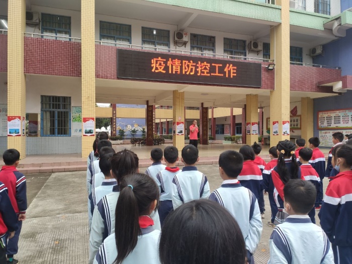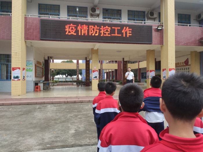 下午教師大會(huì)上,管德豐校長、梁廣平主任要求教師們每天做好學(xué)生健康排查,做到信息準(zhǔn)確,按時(shí)上報(bào)。做好各個(gè)室場的通風(fēng)以及每天放學(xué)后對(duì)室場進(jìn)行清潔消毒。