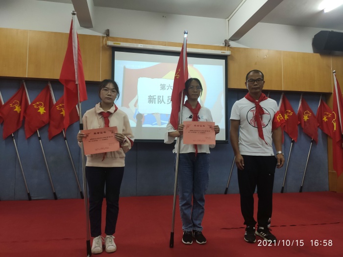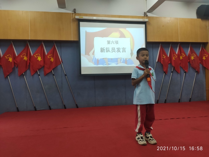 大隊(duì)輔導(dǎo)員林靜敏老師宣讀了新隊(duì)員入隊(duì)名單,并對新隊(duì)員入隊(duì)表示熱烈祝賀。在大隊(duì)輔導(dǎo)員的領(lǐng)下,在莊嚴(yán)的隊(duì)旗下,高高地舉起右手大聲宣誓,時刻準(zhǔn)備著為共產(chǎn)主義事業(yè)而奮斗!接著由新隊(duì)員代表林永輝同學(xué)和老隊(duì)員代表李文駿同學(xué)做了精彩的發(fā)言,梁廣平主任對新晉中隊(duì)授予中隊(duì)旗并頒發(fā)聘書。最后再新隊(duì)員堅(jiān)定的呼號聲中結(jié)束了本次的儀式,相信他們能在星星火炬的指引下,牢記黨的教誨,全面發(fā)展,茁壯成長。