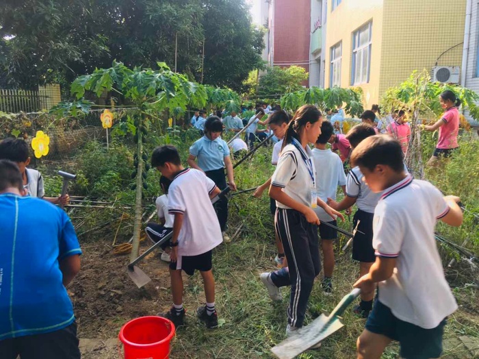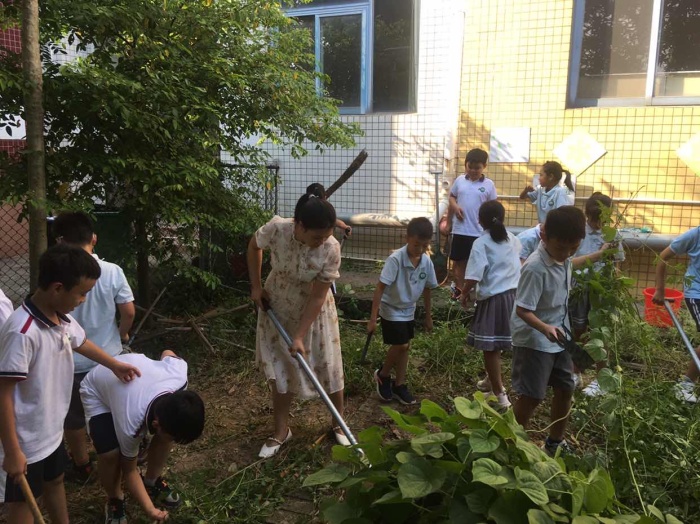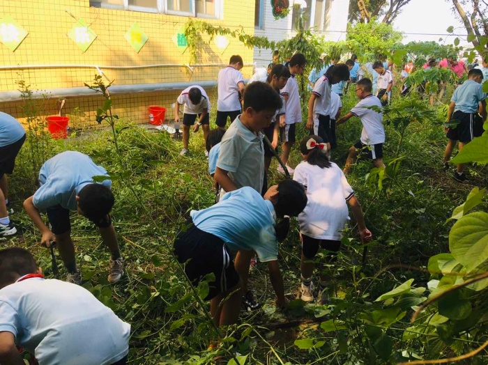 活動準備開始了,孩子們集中學校操場。馮楚恩老師著重強調了活動中應注意的各項安全,如:勞動工具的正確使用、人員的合理分配、勞動的正確方式等。在領好勞動工具后,孩子們有序來到各自負責的勞動基地里,開始在長滿雜草的地里熱火朝天的干了起來,有的用手拔,有的用鋤頭挖,有的用小鏟子鏟。一滴滴汗珠從孩子們的臉上滑下來,紅撲撲的小臉蛋上洋溢著快樂的笑容。不到一個小時的勞動時間,一片雜草叢生的勞動基地雜草已基本被鏟除。后期的松土、種植等將另行開展。