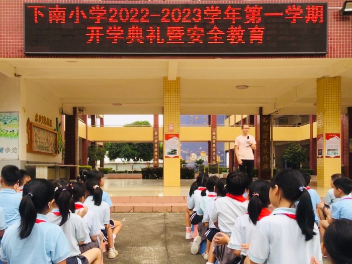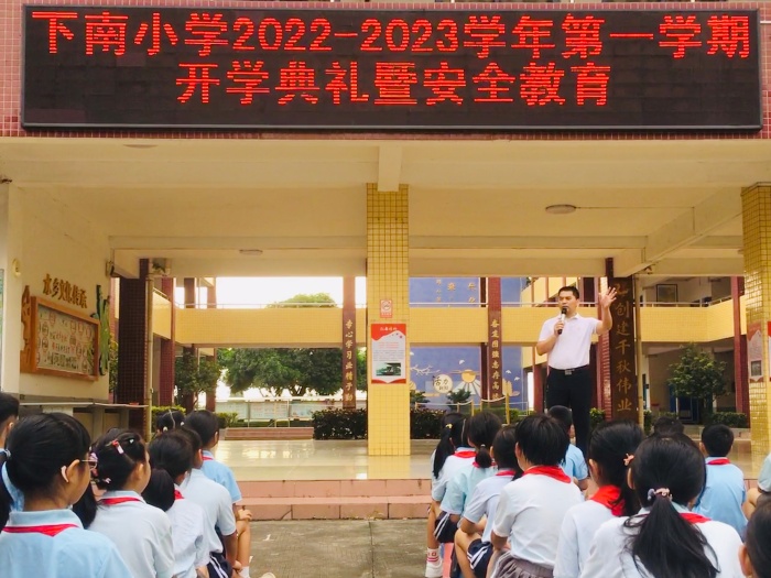 秋風送爽,在這象征著收獲和放飛夢想的季節(jié)里,港口鎮(zhèn)下南小學又迎來嶄新的一學期。2022年9月1日上午8點,下南小學全體師生齊聚在操場,隆重舉行了2022-2023年度第一學期開學典禮暨安全教育。