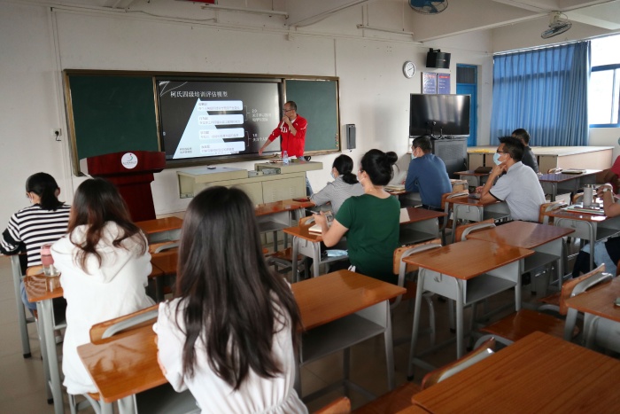培訓(xùn)過(guò)程中,學(xué)校教務(wù)副主任李桂華老師為全體教師講解了學(xué)校的信息化教學(xué)模式,詳細(xì)地解讀了學(xué)校研修的關(guān)鍵能力點(diǎn)、校本研修方案和考核方案,他指出,全體教師要在學(xué)校、科組所選定能力點(diǎn)選擇個(gè)人研修的3個(gè)關(guān)鍵能力點(diǎn)進(jìn)行研修,全體教師要完成線上和線下共50學(xué)時(shí)的研修任務(wù)。學(xué)校將組建青年教師信息技術(shù)攻堅(jiān)團(tuán)隊(duì),開(kāi)展多層次的信息技術(shù)應(yīng)用培訓(xùn)活動(dòng),整校推進(jìn),全員參與。在研修過(guò)程中要注重結(jié)合課題研究,以課題為抓手,促進(jìn)學(xué)科教學(xué)與信息技術(shù)應(yīng)用深度融合,提高教師的信息化教學(xué)能力。