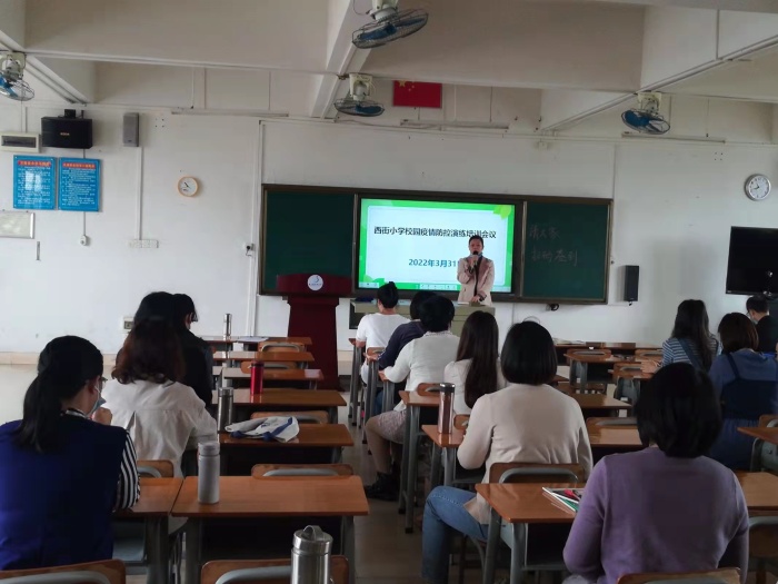 本次應(yīng)急處置演練由梁榮根校長(zhǎng)總指揮,梁麗鴻副校長(zhǎng)執(zhí)行指揮,重點(diǎn)進(jìn)行了學(xué)校出現(xiàn)新冠肺炎確診病例的密切接觸者場(chǎng)景的演練。在演練前,梁麗鴻副校長(zhǎng)根據(jù)最新應(yīng)急處置方案,帶領(lǐng)全體教師進(jìn)行演練前培訓(xùn),詳細(xì)介紹了應(yīng)急處置的流程以及處理辦法。