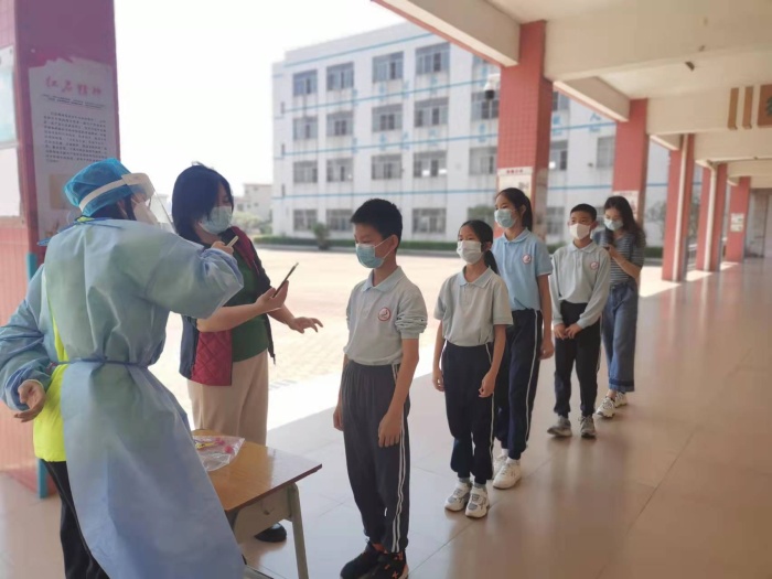 在模擬情景中,梁校長(zhǎng)接到衛(wèi)健部門通知,校內(nèi)有一名學(xué)生是新冠肺炎疫情病例的密切接觸者。接到通知后,學(xué)校立即召開疫情防控工作會(huì)議,啟動(dòng)應(yīng)急預(yù)案,部署處置工作,校園實(shí)施封閉管理。相關(guān)負(fù)責(zé)人廣播通知全校師生停止一切集體活動(dòng),做好個(gè)人防護(hù),相關(guān)班主任核實(shí)學(xué)生信息,立刻聯(lián)系家長(zhǎng),對(duì)學(xué)生的流行病學(xué)史進(jìn)行調(diào)查,衛(wèi)生員陳輝燕老師將密接者轉(zhuǎn)移到隔離室,協(xié)助“三人小組”轉(zhuǎn)運(yùn)該生到定點(diǎn)機(jī)構(gòu)隔離觀察,密接者所在班級(jí)學(xué)生及老師轉(zhuǎn)移到備用課室,由清潔人員將校內(nèi)活動(dòng)場(chǎng)所進(jìn)行全面消毒。同時(shí)在上級(jí)指導(dǎo)下開展排查工作及組織師生核酸檢測(cè)。演練結(jié)束后,梁麗鴻副校長(zhǎng)做了活動(dòng)總結(jié),她要求所有人員要認(rèn)真、嚴(yán)肅對(duì)待每一次演練,本著為每一位學(xué)生負(fù)責(zé)的原則,緊繃疫情防控這根“弦”,為師生的安全筑起堅(jiān)固的堡壘。