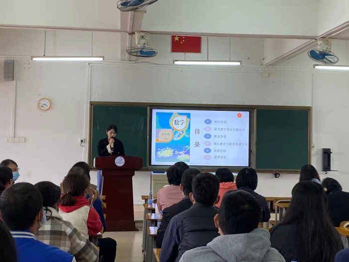 本活動(dòng)的主要流程:第一環(huán)節(jié)由陳丹霞老師和李桂華老師分別執(zhí)教因數(shù)與倍數(shù),質(zhì)數(shù)和合數(shù)。第二環(huán)節(jié)由陳丹霞老師做整體的單元解讀。第三環(huán)節(jié)由陳丹霞老師,呂月歡老師,梁麗鴻老師,廖麗榕老師,李桂華,劉雪穎老師對(duì)本單元的六個(gè)課時(shí)進(jìn)行說(shuō)課以及課后反思。第四環(huán)節(jié)由李桂華老師做以《在實(shí)踐中思考,在思考中成長(zhǎng)》為主題的專題講座。第五環(huán)節(jié)由陳丹霞老師為本單元的教學(xué)提出教學(xué)建議。最后教研組長(zhǎng)陳金枝對(duì)本次活動(dòng)做總結(jié)性發(fā)言,她充分肯定了本次活動(dòng)。由于時(shí)間的關(guān)系,蘇彩南老師在會(huì)后以聊天的形式給全體數(shù)學(xué)老師提了一些建議,希望數(shù)學(xué)老師在課堂上能夠向語(yǔ)文和英語(yǔ)老師學(xué)習(xí),借助語(yǔ)言和動(dòng)作吸引學(xué)生的注意力。