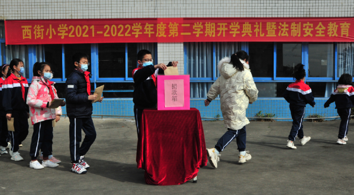 早上八點(diǎn)半,開(kāi)學(xué)典禮正式開(kāi)始。大會(huì)伊始,鮮艷的五星紅旗在莊嚴(yán)的國(guó)歌聲中冉冉升起,沉寂了二十多日的校園開(kāi)始恢復(fù)勃勃生機(jī)。緊接著,西街小學(xué)章小蘭校長(zhǎng)給全體師生上了主題為《爭(zhēng)當(dāng)自我管理小能手》的思政第一課,章校長(zhǎng)號(hào)召全體學(xué)生做自我狀態(tài)調(diào)整的管理者、做擁有良好學(xué)習(xí)習(xí)慣的管理者、做文明守紀(jì)小能手、做安全管理小能手,在新的學(xué)期樹(shù)立新的目標(biāo),爭(zhēng)取新的進(jìn)步。隨后,西街小學(xué)梁麗鴻副校長(zhǎng)為師生們上了一堂生動(dòng)的安全第一課,梁校長(zhǎng)用不同的案例提醒學(xué)生們注意在校安全、交通安全、飲食安全和居家安全,高高興興上學(xué)、平平安安回家。大會(huì)第四項(xiàng),也是學(xué)生們最為期待的學(xué)習(xí)標(biāo)兵頒獎(jiǎng)環(huán)節(jié),各班班主任為班級(jí)的學(xué)習(xí)標(biāo)兵進(jìn)行了頒獎(jiǎng)。大會(huì)最后為“慈善萬(wàn)人行”捐款環(huán)節(jié),全體西街小學(xué)的老師和班級(jí)學(xué)生代表紛紛走到主席臺(tái)獻(xiàn)上了自己的愛(ài)心款項(xiàng)。