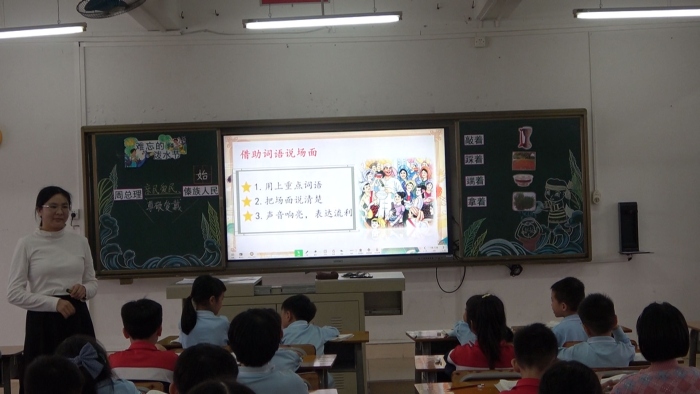首先是由施秋怡老師展示《難忘的潑水節(jié)》第一課時(shí)的課例。本節(jié)課,施老師帶領(lǐng)學(xué)生隨文識(shí)字,力求“字不離詞,詞不離句”,音、形、義相結(jié)合,并通過(guò)學(xué)習(xí)說(shuō)句子,在句子中運(yùn)用字詞,達(dá)到學(xué)以致用的目的。第二個(gè)課例是由譚碧宜老師執(zhí)教的《難忘的潑水節(jié)》第二課時(shí)。譚老師巧妙借助圖片、視頻等多媒體資料,多維度地幫助學(xué)生更直觀地了解故事背景,使學(xué)生與文本產(chǎn)生情感上的共鳴,讓學(xué)生在讀中思,在讀中悟。