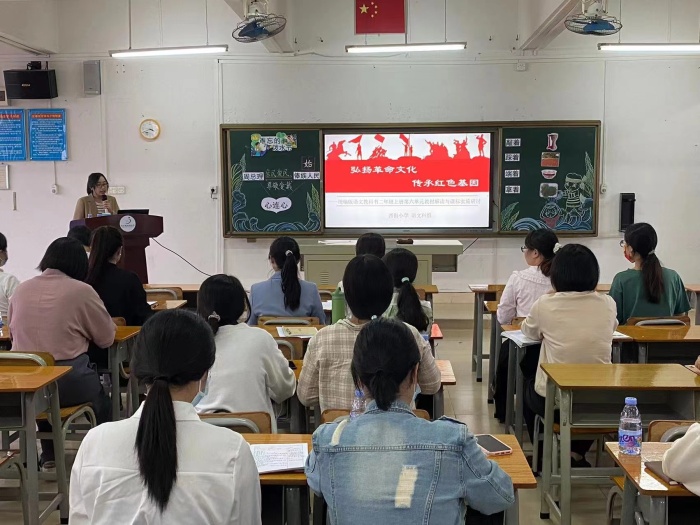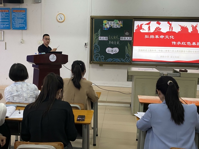 緊接著,西街小學(xué)語(yǔ)文科組長(zhǎng)施秋怡老師從單元整體教學(xué)的角度進(jìn)行詳細(xì)闡述。她指出,革命教育主題單元要確定核心人文內(nèi)涵,落實(shí)語(yǔ)言文字訓(xùn)練,實(shí)現(xiàn)“文道統(tǒng)一”。