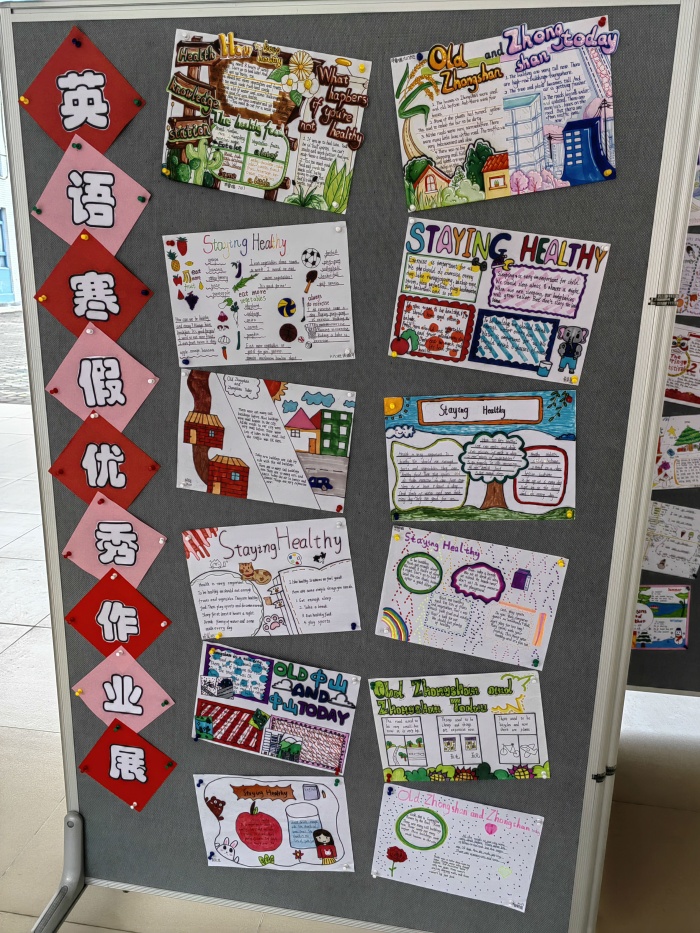 本次作業(yè)展示包括各年級語文、數(shù)學、英語三個學科以及德育作業(yè)。參展的學生作品有春節(jié)的傳統(tǒng)文化繪畫;有內(nèi)容豐富精彩、感悟深刻的讀書筆記;有制作精美、構(gòu)思巧妙的手工制品;也有英語手抄報和數(shù)學思維導圖。一份份洋溢著新年氣息的作業(yè)整齊陳列在教學樓走廊,從不同角度再現(xiàn)了孩子們豐富多彩的寒假學習生活,充分體現(xiàn)了孩子們的素質(zhì)和智慧。