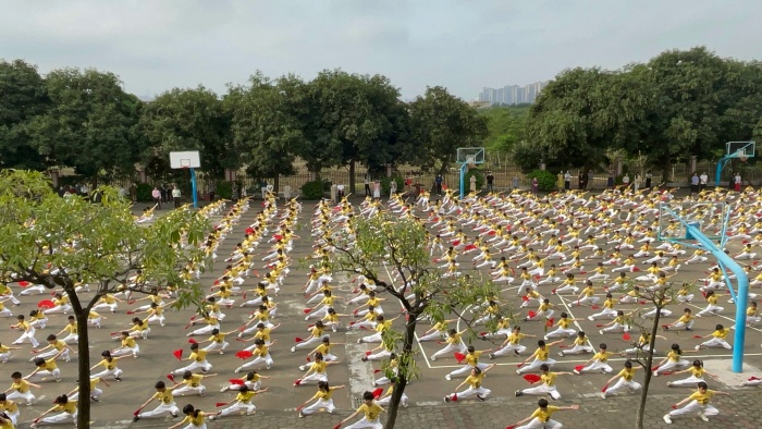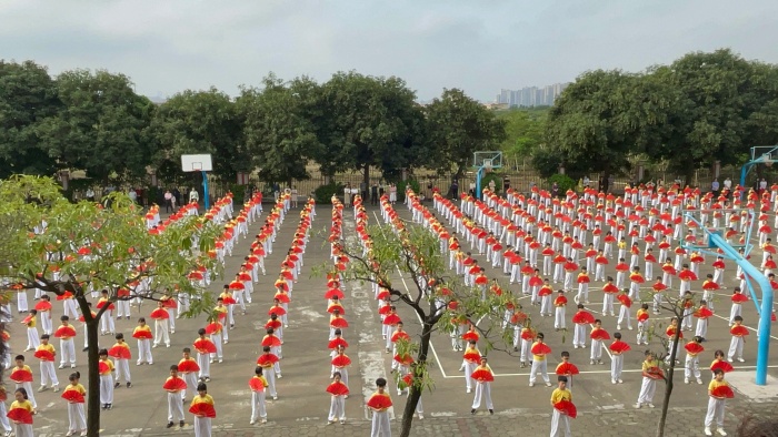 隨著音樂聲響起,同學(xué)們快速地整裝列隊來到操場上,家長們也一起前往,感受西小的陽光大課間。伴著輕快的樂曲,孩子們的扇操盡顯英氣,出腿、揮扇,干脆利落,氣勢如虹。健美操活力四射,處處散發(fā)著青春的朝氣。八段錦剛?cè)嵯酀?,一招一式如行云流水,每個人都展示出西小學(xué)子健康向上、不屈不撓的精神。家長們紛紛露出贊賞的眼神,給予高度認(rèn)可。