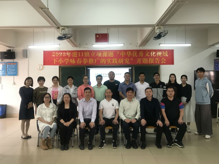 春回大地、草長(zhǎng)鶯飛。在春意盎然的四月里,港口鎮(zhèn)西街小學(xué)迎來了教研工作的一大喜事——港口鎮(zhèn)2022年立項(xiàng)課題“中華優(yōu)秀文化視域下小學(xué)詠春拳推廣的實(shí)踐研究”如期開題了。4月6日上午,開題報(bào)告論證會(huì)在西街小學(xué)多媒體室召開。出席本次論證會(huì)的專家有港口鎮(zhèn)教育和體育事務(wù)中心陳樹洪老師、港口鎮(zhèn)民主小學(xué)桂玉盛主任和港口鎮(zhèn)石特小學(xué)陳國(guó)文老師。會(huì)議由西街小學(xué)徐艷麗副校長(zhǎng)主持,西街小學(xué)梁容根校長(zhǎng)、課題組成員及體藝科組全體老師參加了會(huì)議。