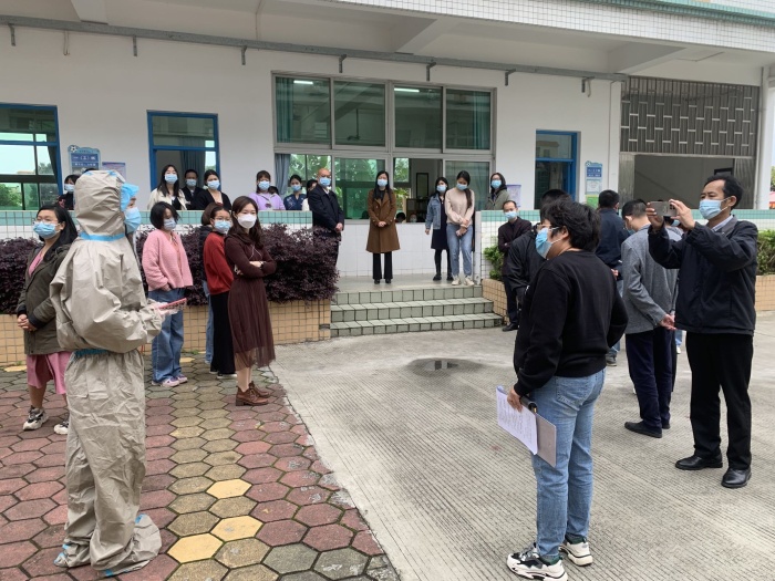 這次演練主要由德育處主任梁倚靜負(fù)責(zé)組織,分三個場景進(jìn)行校園疫情應(yīng)急演練:第一個場景是學(xué)生返校進(jìn)入校園時體溫異常的演練;第二個場景是上課時學(xué)生發(fā)生身體不適的演練:第三個場景是學(xué)校接到通報,1名學(xué)生為新冠肺炎病例的密切接觸者,被轉(zhuǎn)運后該生核酸檢測結(jié)果呈陽性的演練。演練中,老師們嚴(yán)格有序按照規(guī)定的流程進(jìn)行,各工作組分工明確、反應(yīng)迅速、協(xié)調(diào)有序,準(zhǔn)確高效地完成了演練任務(wù),達(dá)到了預(yù)期目的。