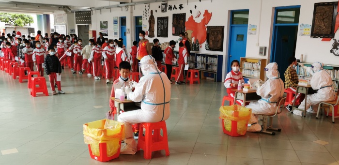 為了有效遏制新冠肺炎疫情的擴散蔓延,中南小學在收到港口鎮(zhèn)文體教旅局關于全體師生在學校進行核酸檢測的通知后,中南小學校長丘茶芬立刻組織學校行政班子召開緊急會議,緊張部署,統(tǒng)籌分工,明確責任。全校上下眾志成城,落實檢測工作的每一項細節(jié),確保檢測工作的順利進行。