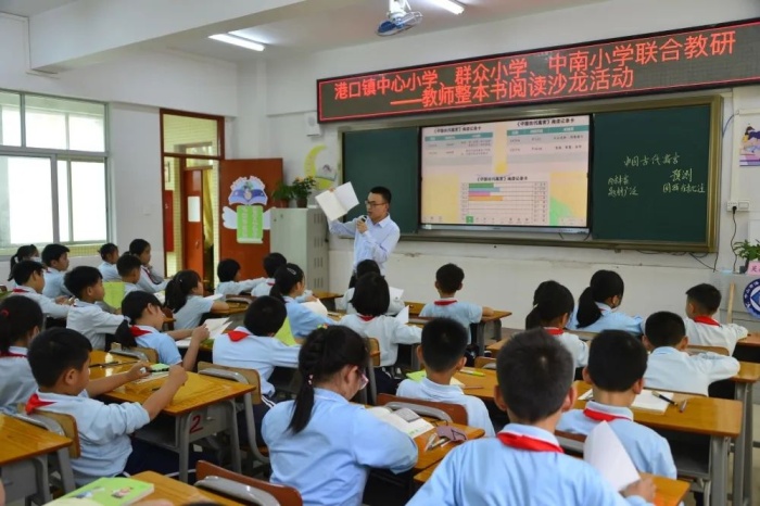 鳥欲高飛先振翅,人求上進(jìn)先讀書。為進(jìn)一步落實(shí)新《義務(wù)教育語文課程標(biāo)準(zhǔn)》關(guān)于“整本書閱讀”教學(xué)的要求,提高教師整本書閱讀教學(xué)技能,2023年3月9日下午,港口鎮(zhèn)中心小學(xué)、群眾小學(xué)、中南小學(xué)三校聯(lián)合在中心小學(xué)教研東室舉行整本書閱讀項(xiàng)目化學(xué)習(xí)教學(xué)研討活動(dòng),港口鎮(zhèn)各兄弟學(xué)校語文教師代表參加本次活動(dòng)。