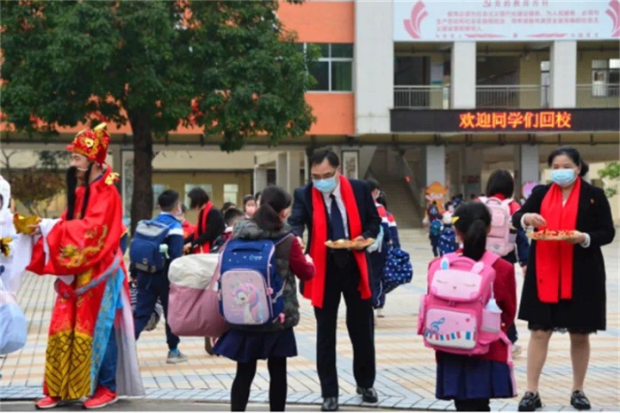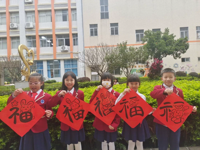 2月6日上午,港口鎮(zhèn)中心小學(xué)到處充滿歡聲笑語。笑容可掬的值日老師,和藹可敬的行政團隊站在校門口迎接中心小學(xué)學(xué)子歸來??矗T口獅隊在鑼鼓聲中跳躍騰飛,吉祥兔蹦蹦跳跳、親切問好,財神爺眉開眼笑、恭賀新禧,真熱鬧呀!老師們正在給孩子們派發(fā)新年利是糖呢,那甜蜜的糖里寄托著老師對學(xué)生的殷殷期盼和衷心的祝福。整個校園經(jīng)過精心布置,展示孩子們充實、愉快的年俗活動和孩子們的新年愿望。